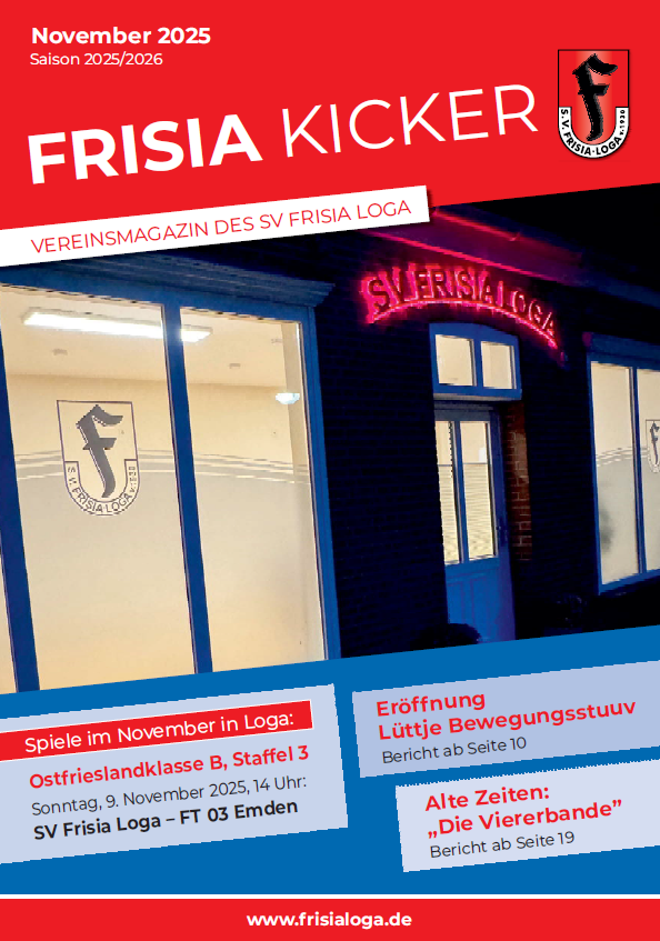 11. November 2025 Der neue Frisia Kicker ist online Der neue Frisia Kicker ist online! Der neue Frisia Kicker steht zum Download bereit! Zukünftig findet...